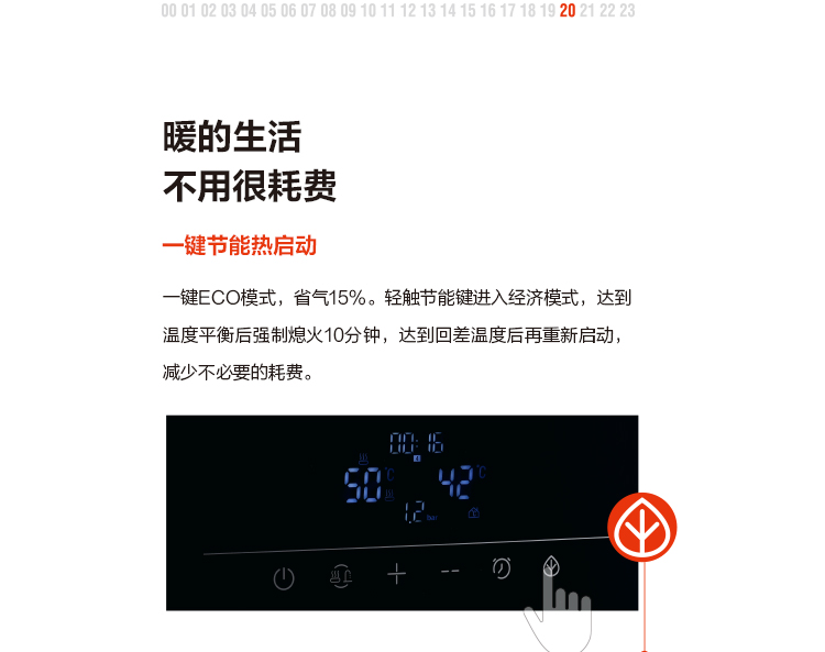 GQH-27F2FFA 采暖热水两用炉分段燃烧 夏季沐浴水不烫 冬季采暖更舒适智能暖预约足氧混燃技术 充分燃烧 快速稳定三重防冻一键ECO节能模式...