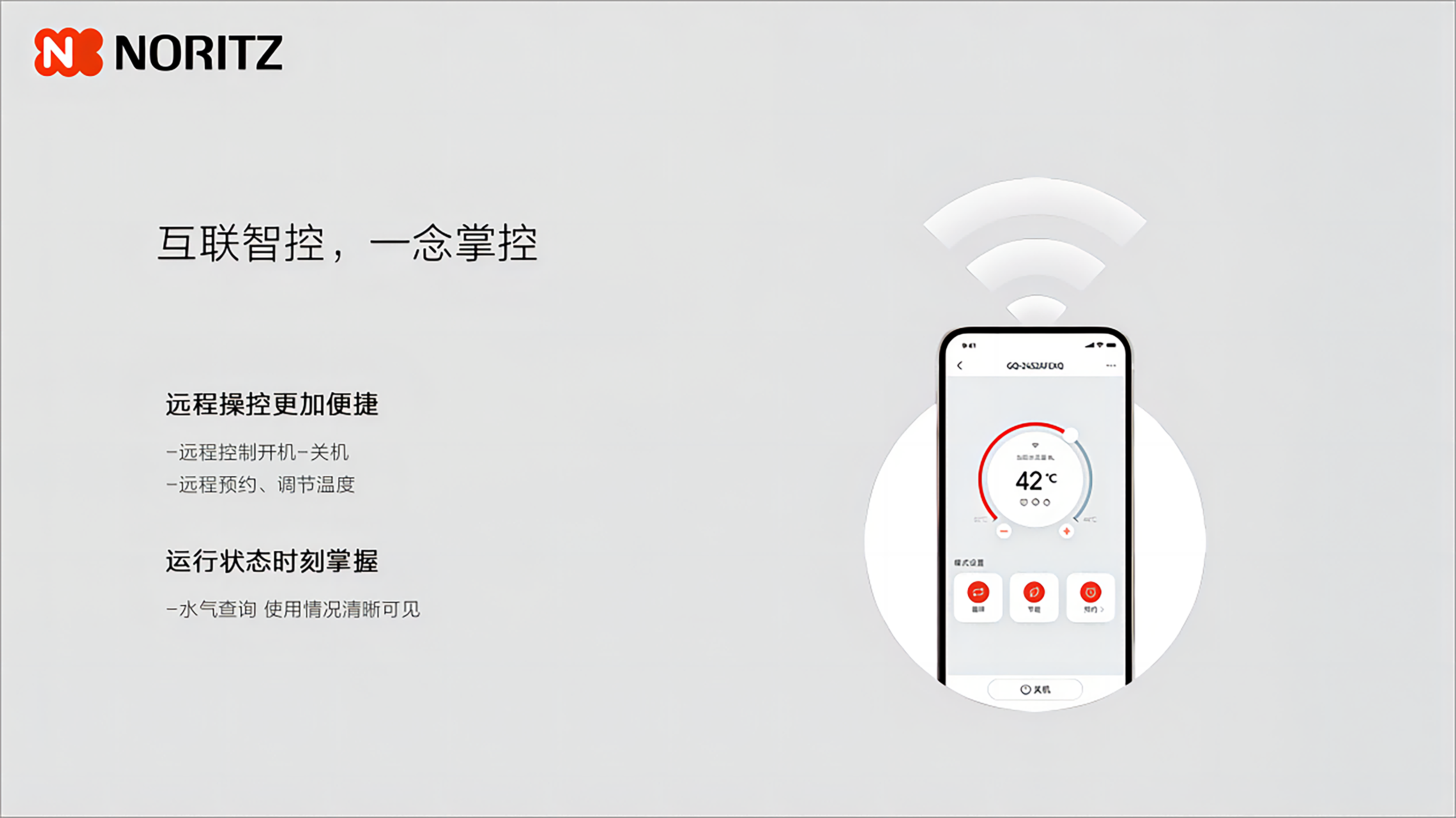 从全屋互联迈向全面互联,物联网正以惊人的速度重塑并优化着我们的生活空间。能率D4风和系列热水器可搭配智能化手机APP远程控制系统,打破了传统热水器的操控与使用束缚。无论用户身处何时何地,只需轻轻一点,就能远程控制开机、关机、温度设定、预约加热等功能,确保在用水时水温始终符合个人需求,实现即开即用的便捷体验。