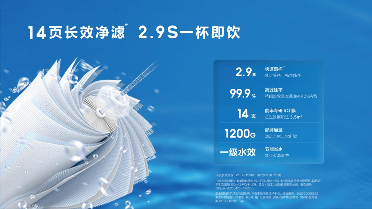 *重金属和有机污染物滤除率,来自宁波海关技术中心,报告编号。502500000299,取加标实验第一次通水,砷、铅、三氯甲烷、四氯化碳的检测数据,检测机型为能率WJ-RO1200-K1D。