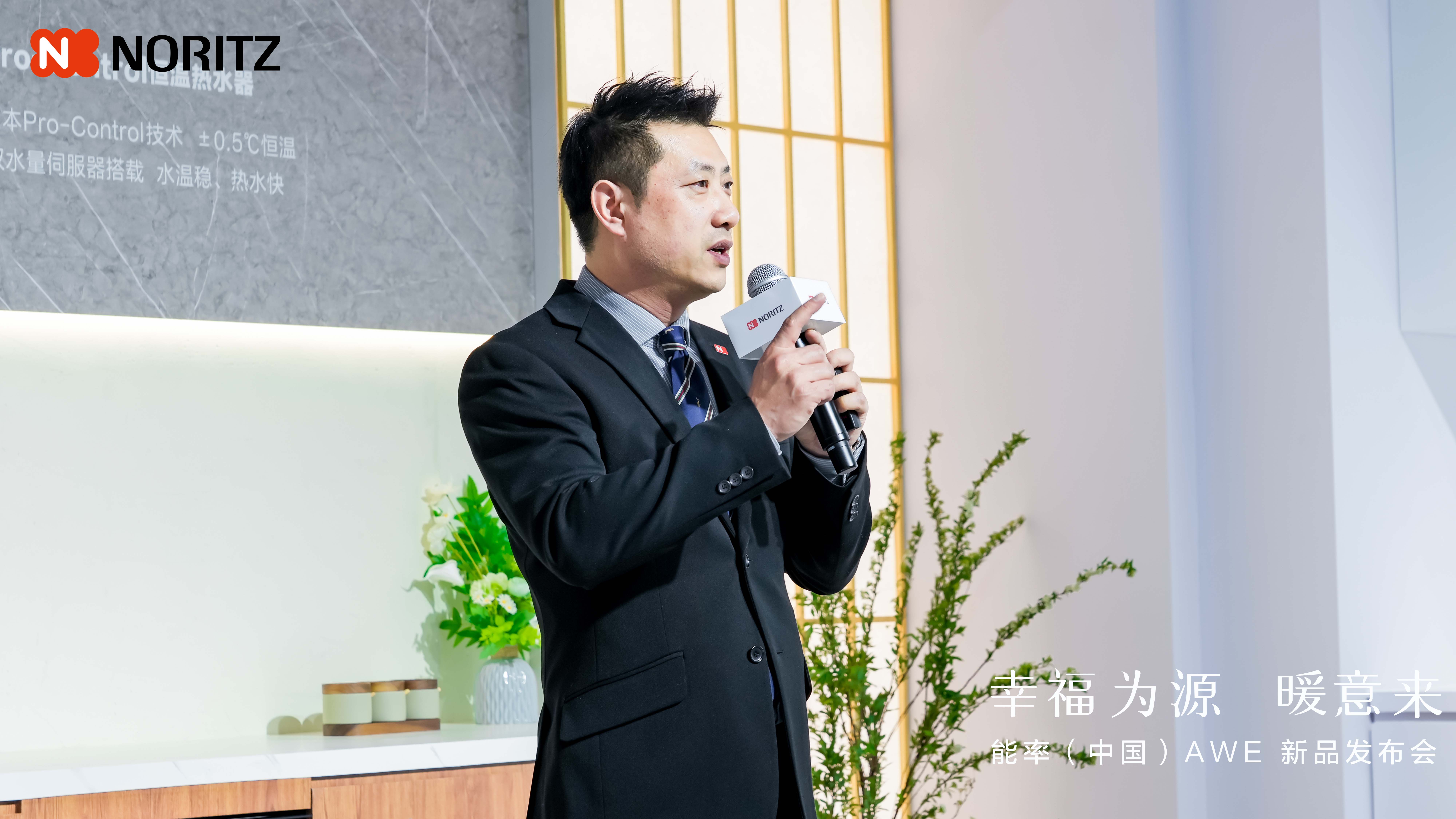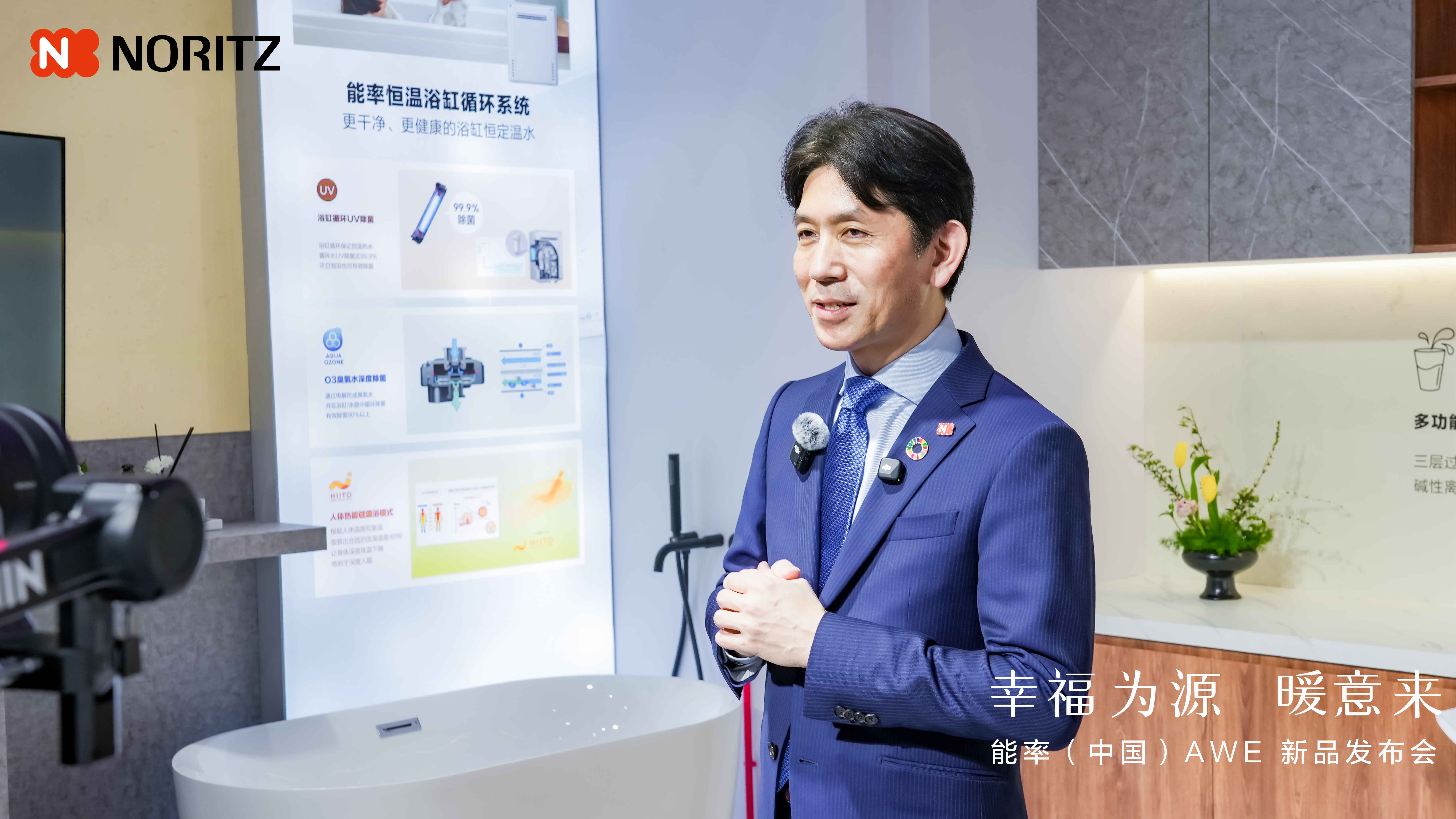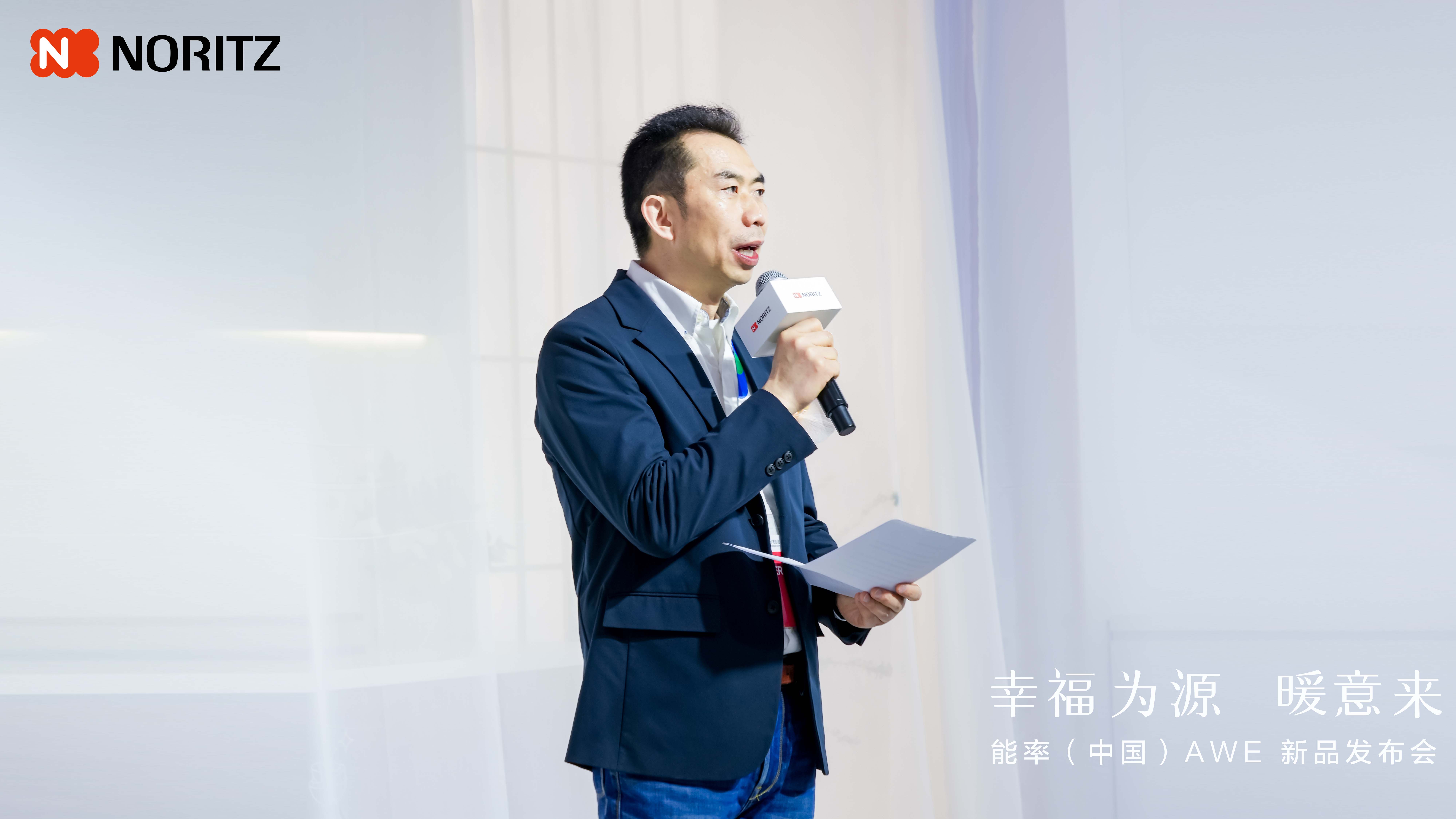 在“幸福为源 暖意来”能率NORITZ新品发布会上,能率(中国)投资有限公司董事总经理森荣介发表了重要讲话。他表示:“从安全、安心到舒适,能率对品质的追求融入到了每一个细节之中。”同时,他也介绍了能率NORITZ在本次展会上带来的全新产品阵容,这些产品不仅体现了能率NORITZ对技术创新的执着追求,更展现了其对消费者需求的深刻洞察。