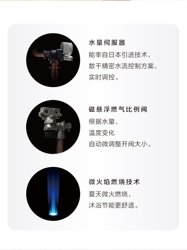 GQ-1650FE(X)智能恒温型燃气热水器两度精控智能技术,智能恒温灵捷机能,快速反应,升温迅速磁悬浮动圈式比例阀精确控制,水温迅速恒定远程多点线控,温度优先设定规格参数产品编号:GQ-1650FE...